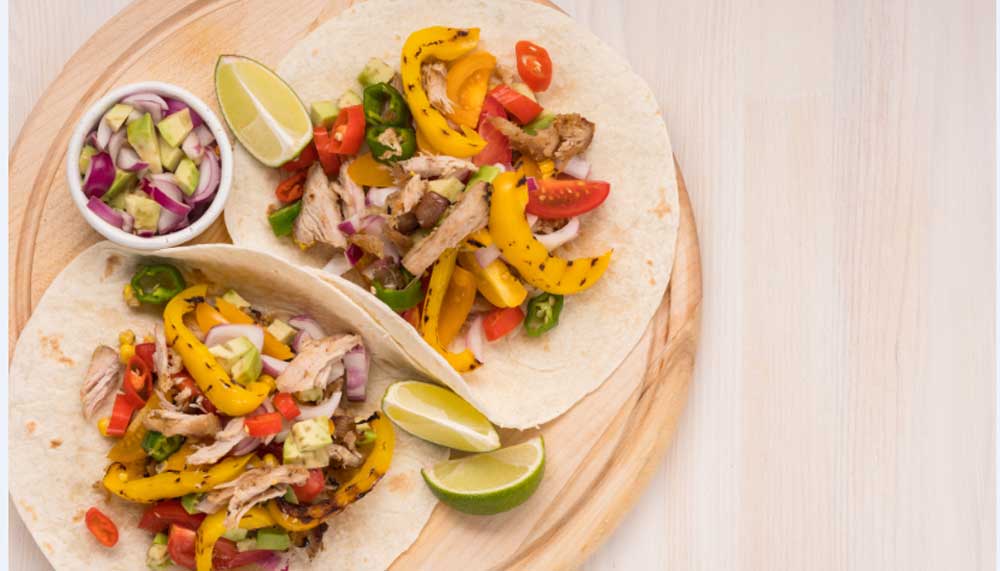 Put the tortillas in the oven to heat up and serve with the chicken and vegetables, a bag of mixed salad and one tub of fresh salsa.